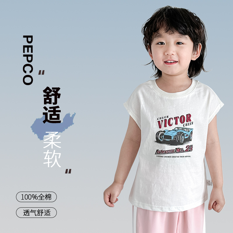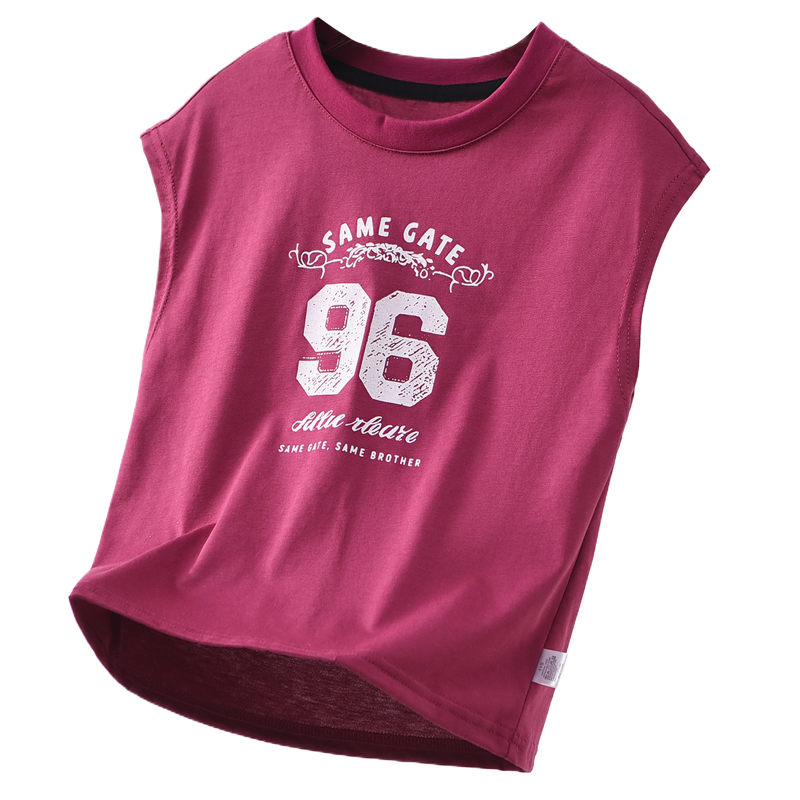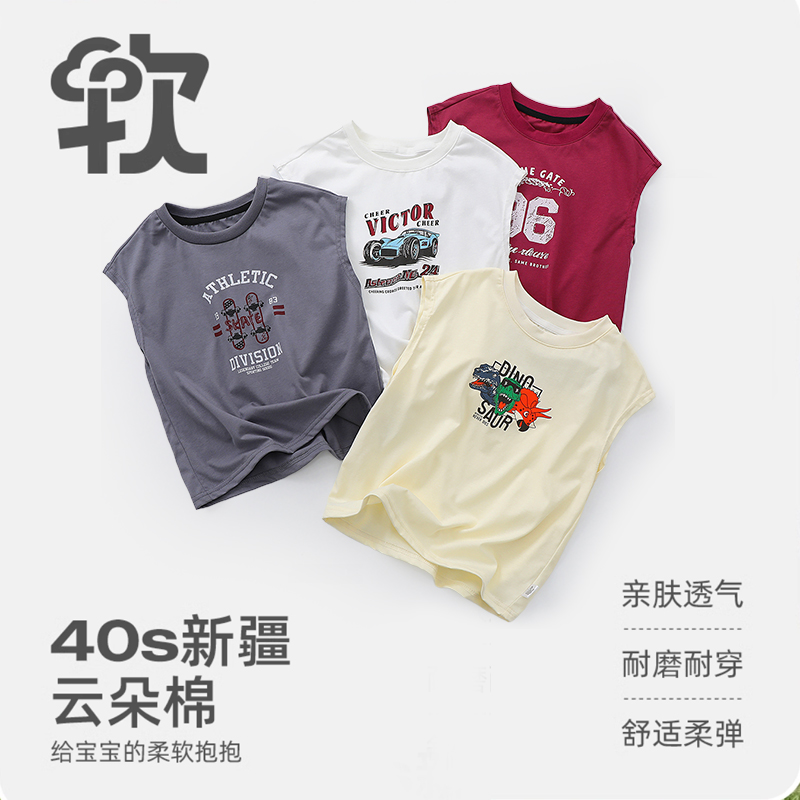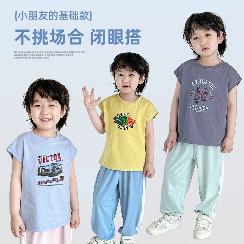 100全棉夏季儿童背心男童纯棉无袖t恤男孩圆领宽肩上衣运动篮球服