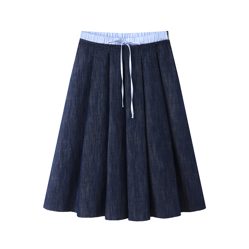 2025夏季新款女装时尚休闲腰头拼接系带牛仔半裙