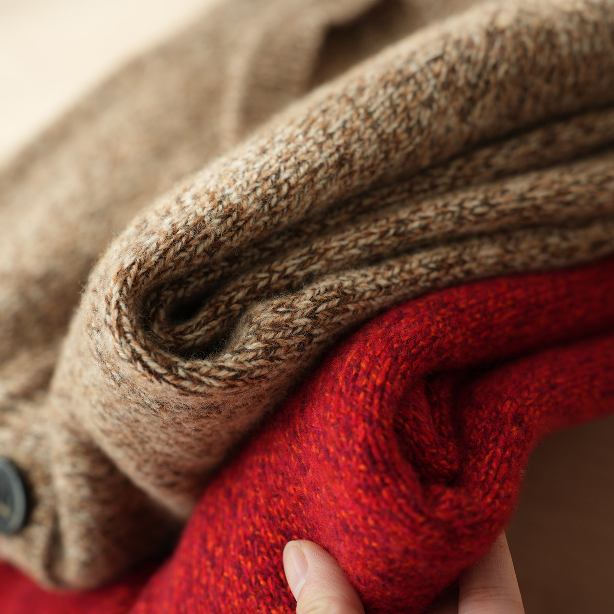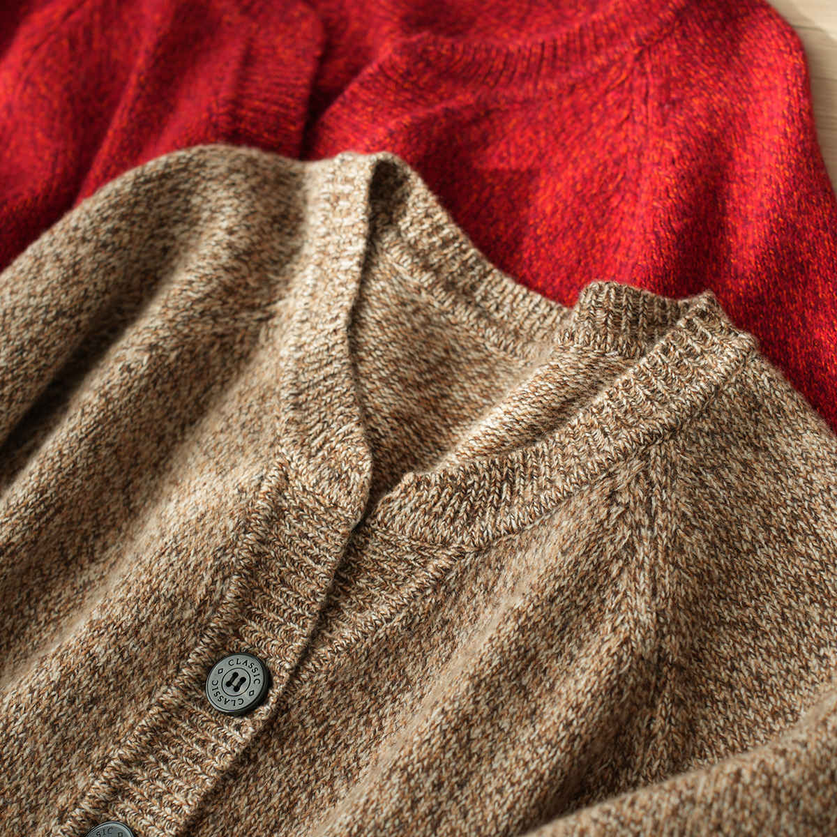 双股26支 厚款 女士全羊毛花纱毛衣 开衫针织短款外套 秋冬款女装