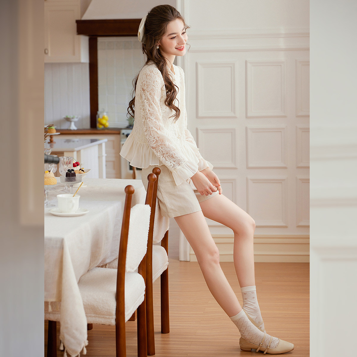 白鹿语新中式国风刺绣衬衫女2025秋季新款荷叶边长袖短外套上衣