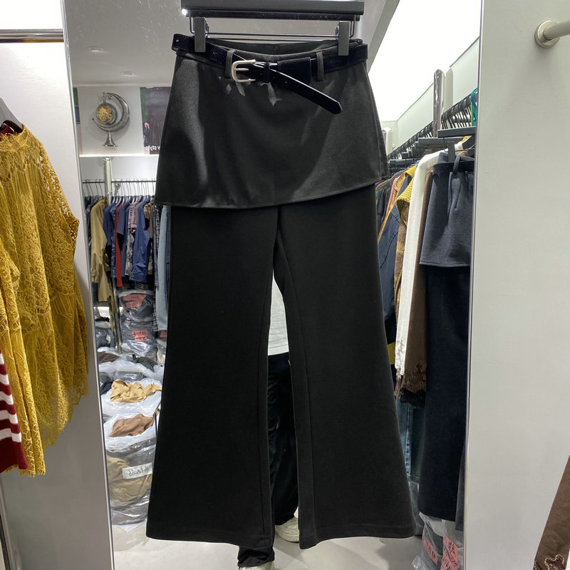 欧洲站2025秋冬新款女装高腰拼屁帘假两件修身显瘦休闲西装裤8835