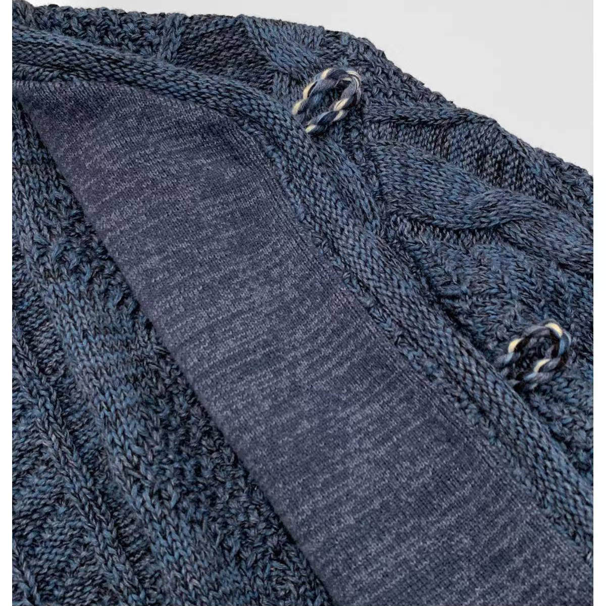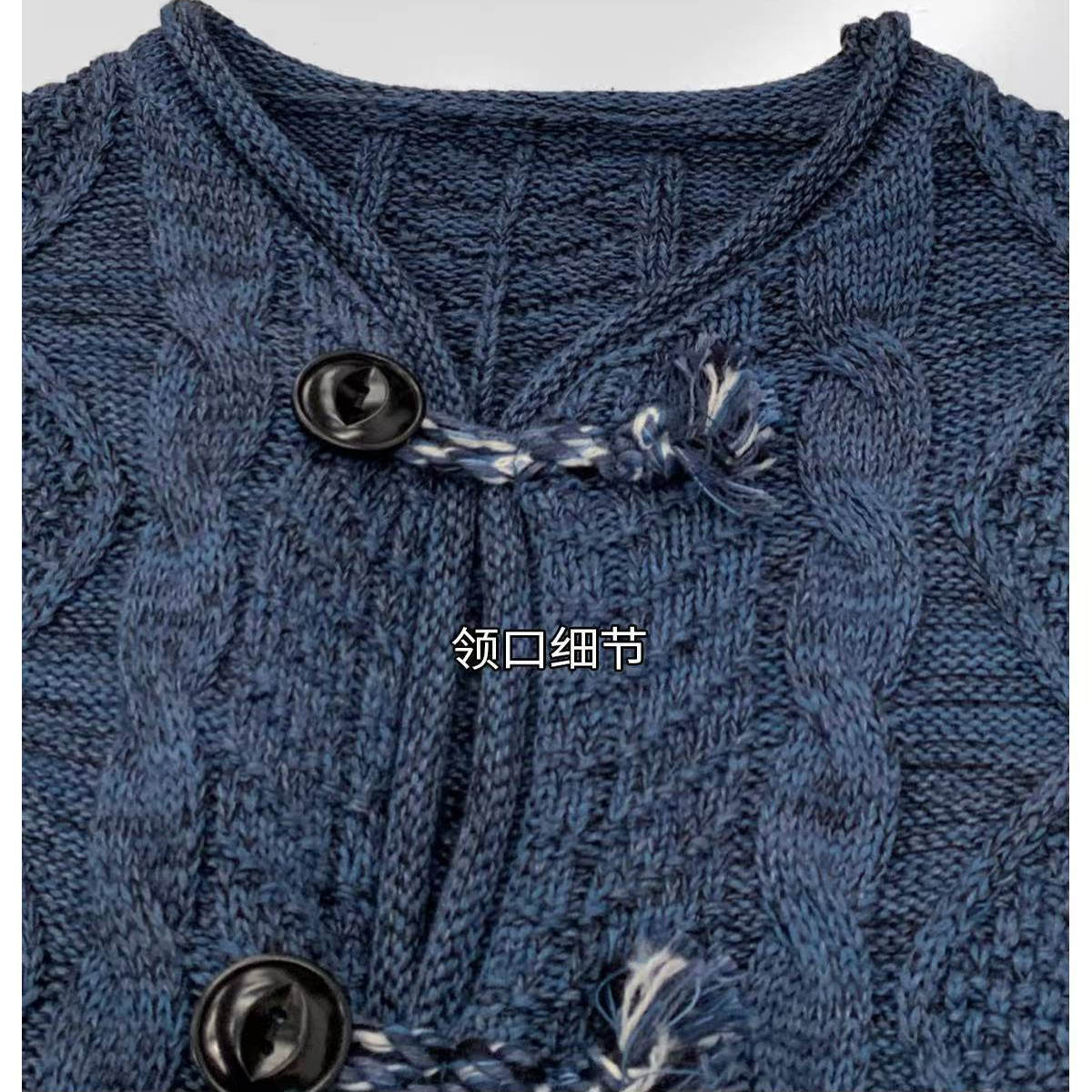 日本小众低奢!25早秋重磅蓝染新中式扭结扣绞花复古牛仔针织开衫