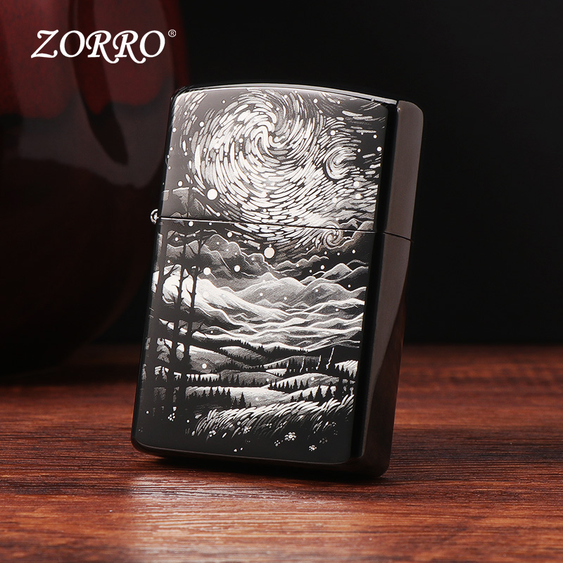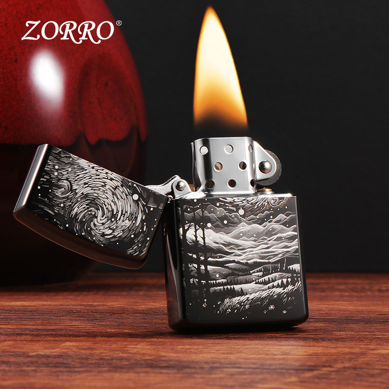 ZORRO/佐罗麦田星空黑冰精雕刻煤油防风打火机男士便携打火机礼物