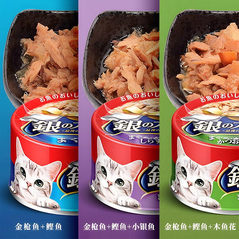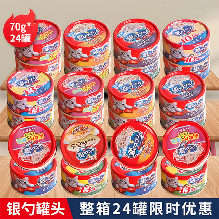 日本佳乐滋银勺 成猫幼猫罐头70g*24罐 吞拿鱼金枪鱼湿粮白肉零食