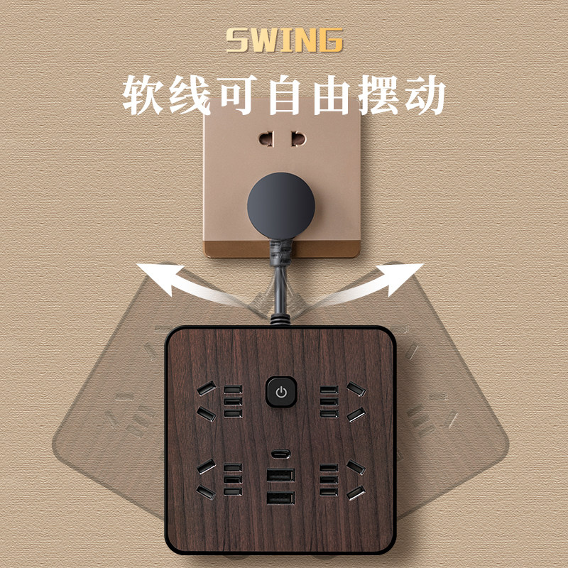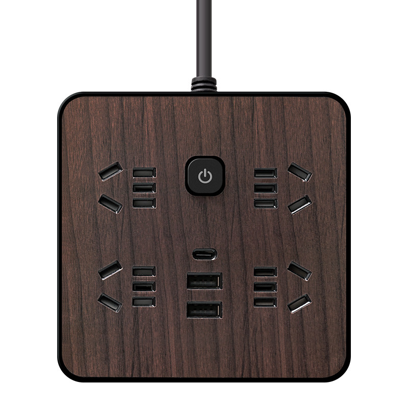 官方正品GN木纹插座方形收纳拖接线板C口USB转换器家用宿舍插排插