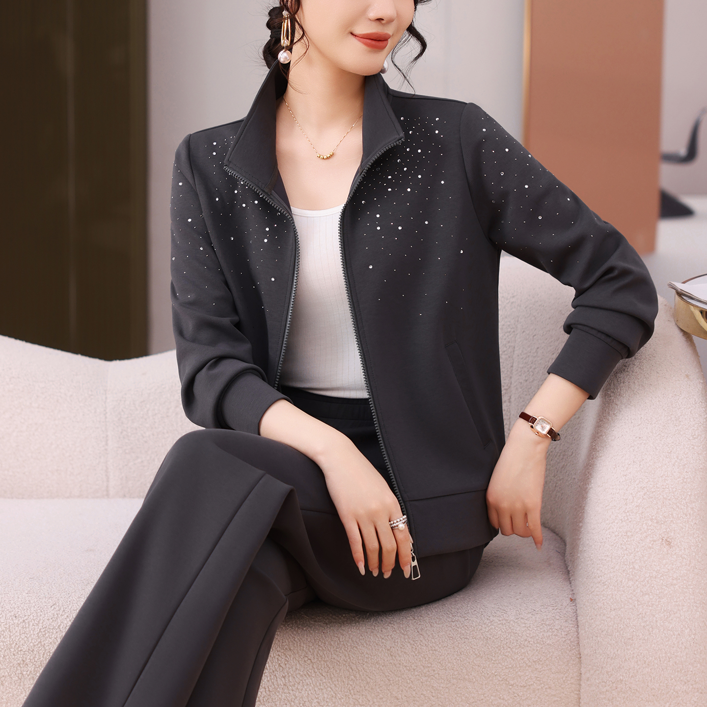 宽松休闲气质运动套装女百搭开衫