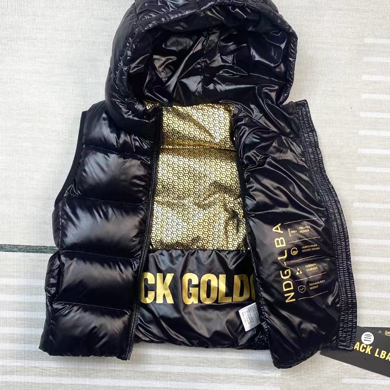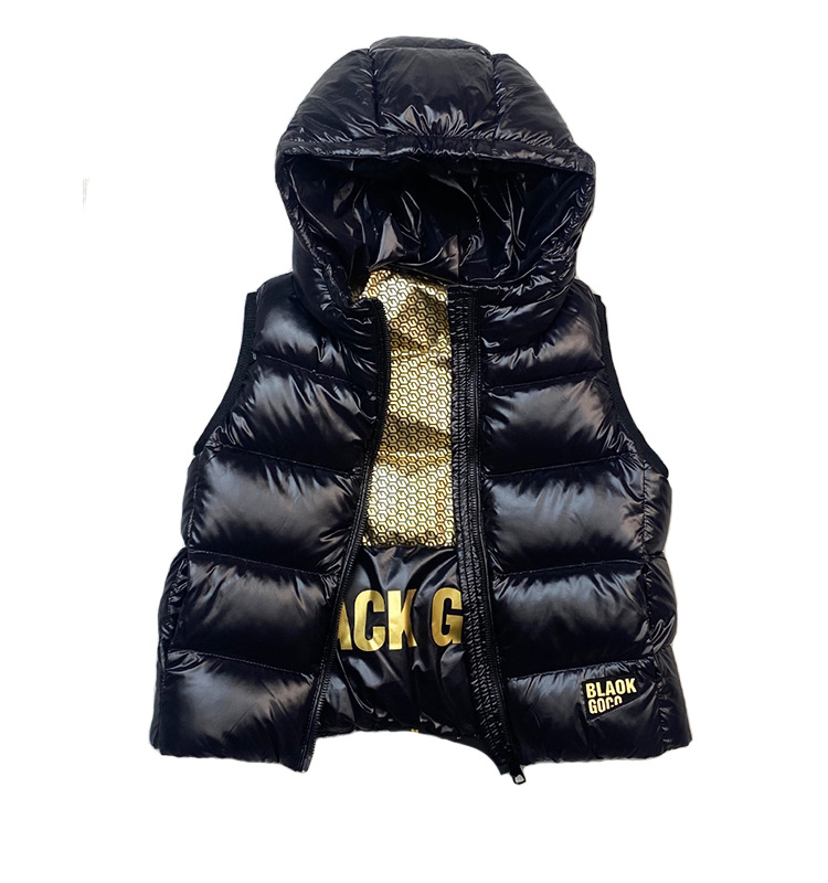 儿童羽绒马甲男童女童同款连帽短款2025秋冬新款坎肩黑金保暖背心