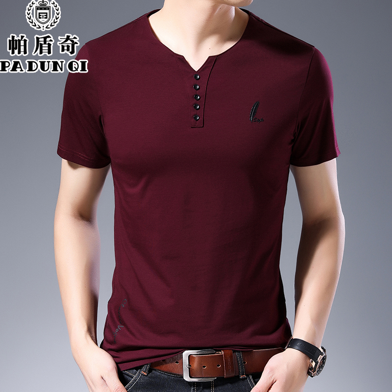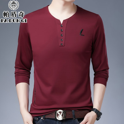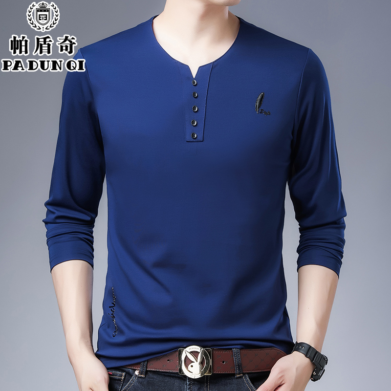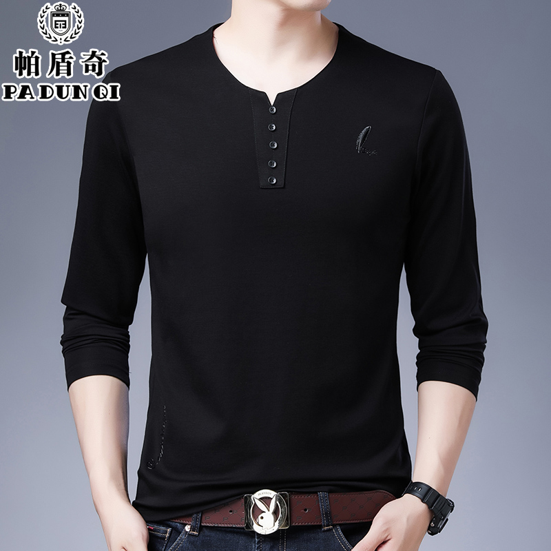 v领长袖t恤男宽松加肥加大码男装潮胖子体恤扣子领秋装上衣打底衫