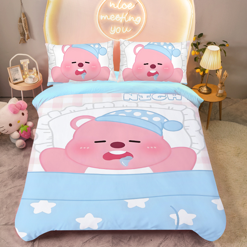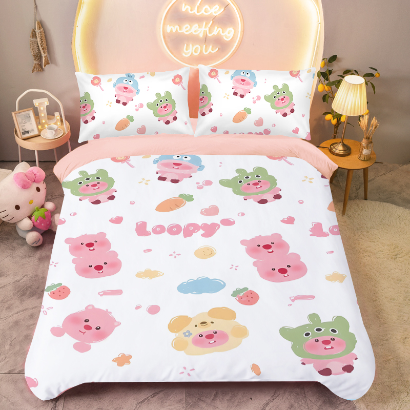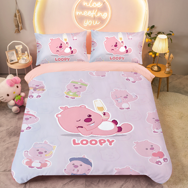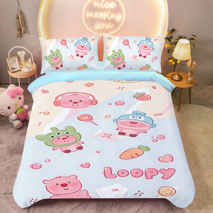 秋冬卡通loopy床上四件套小海狸露比儿童可爱家用床单牛奶绒被套