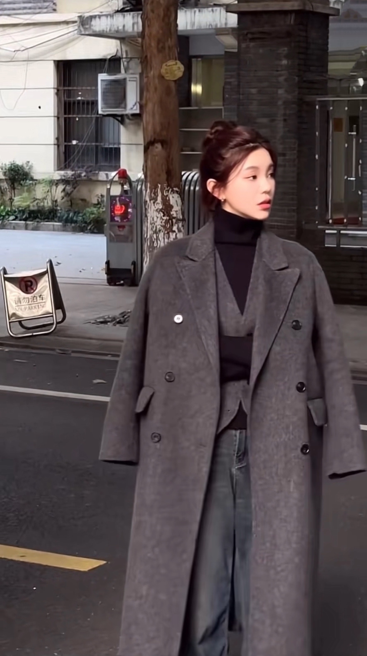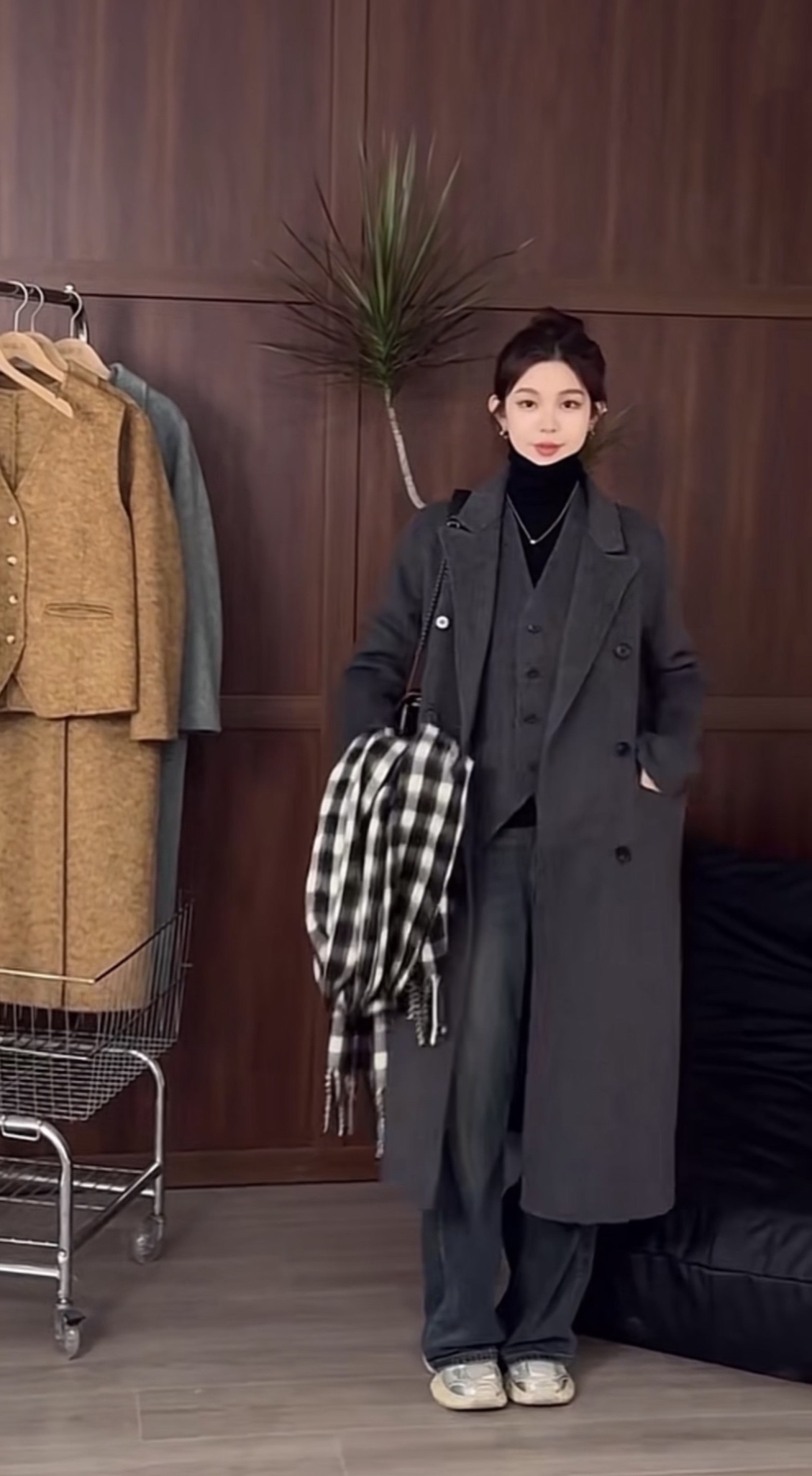 韩系气质显瘦双面羊毛大衣马甲两件套中长款秋季羊毛呢西装外套女