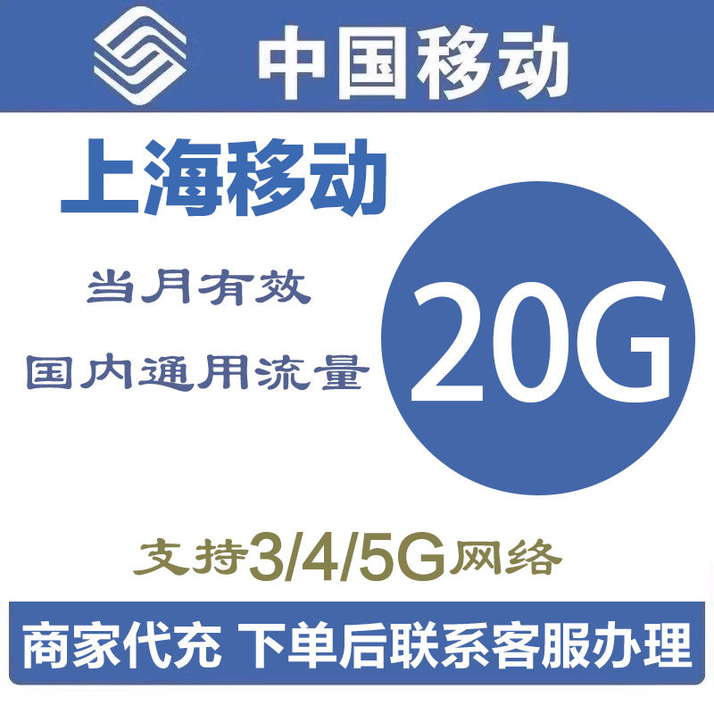 上海移动流量充值20G中国移动流量加油包全国通用流量当月有效