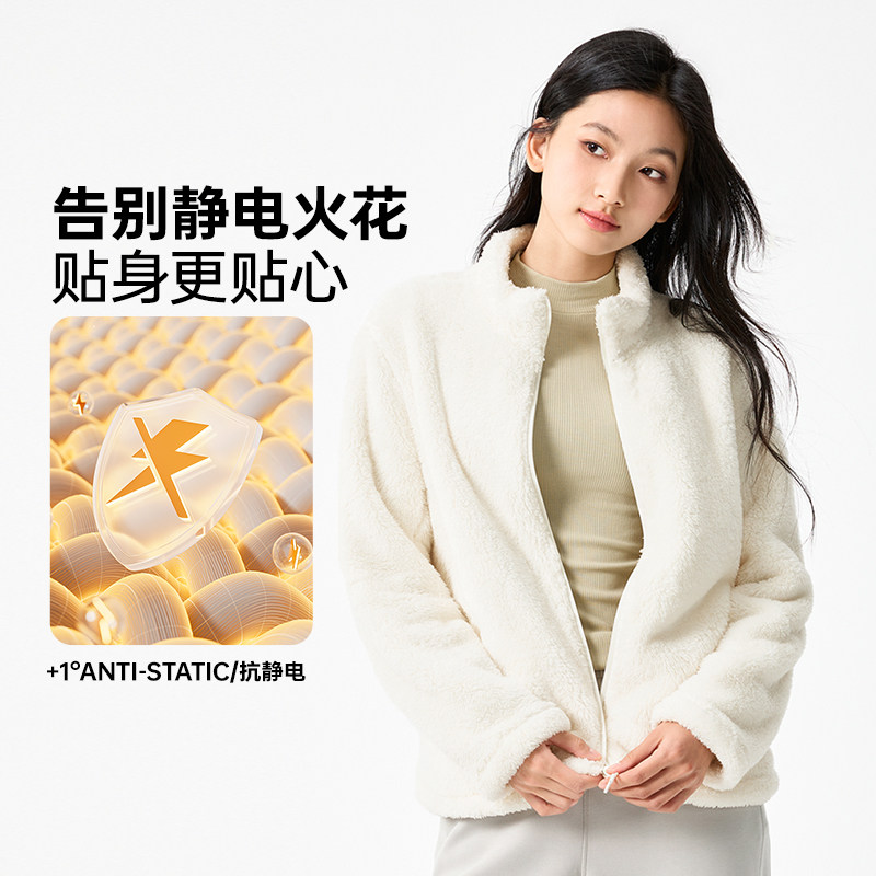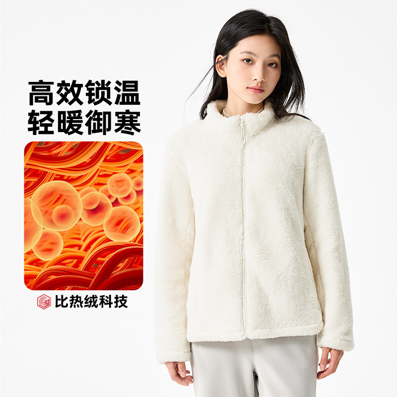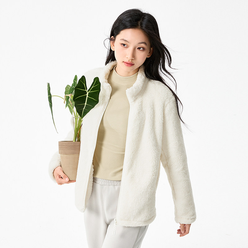 361女装运动外套2025秋冬新款针织加绒外套女士轻便保暖纯白上衣