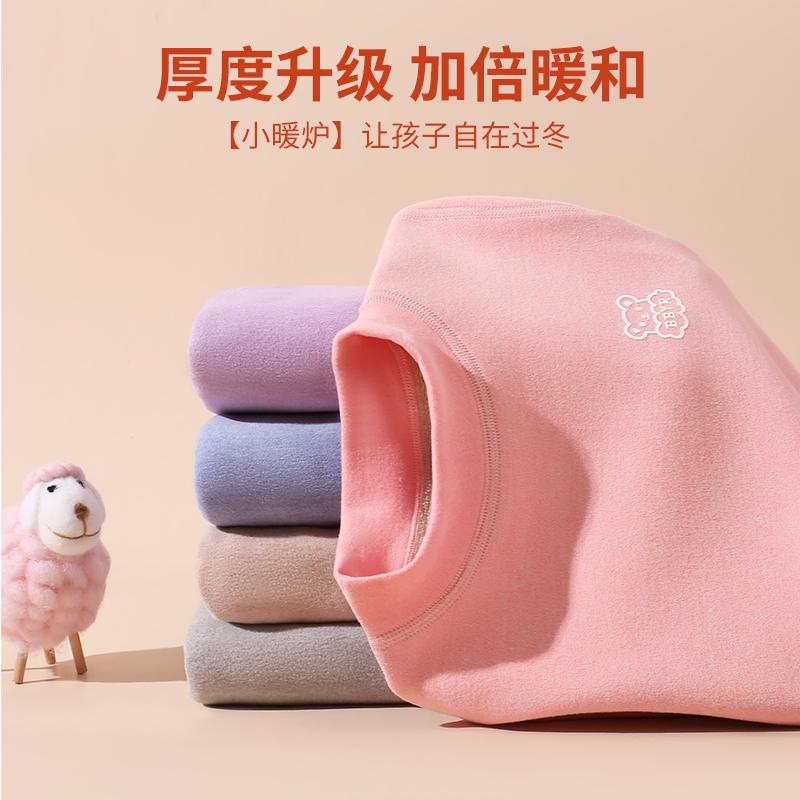 儿童保暖内衣套装加绒加厚一体绒羊羔绒男童女童打底冬季睡衣