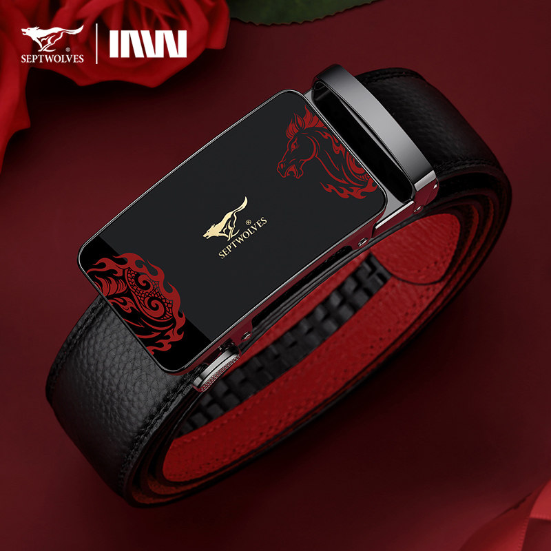 七匹狼本命年红腰带男士真皮2026马年属马红色皮带新年礼物送老公