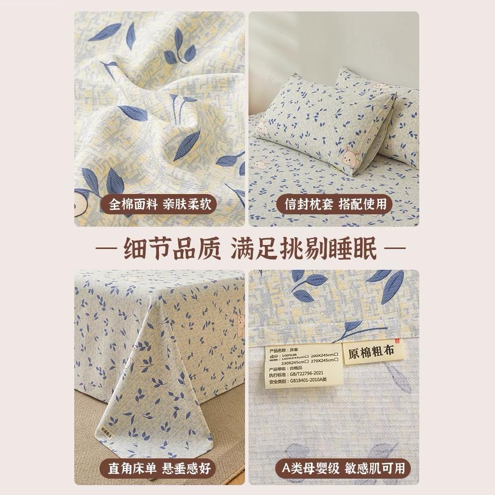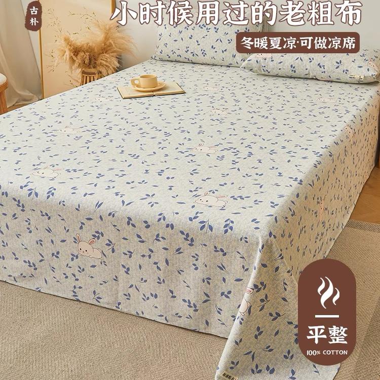 A类老粗布床单单件100全棉被单夏季凉感单人学生宿舍不起皱三件套
