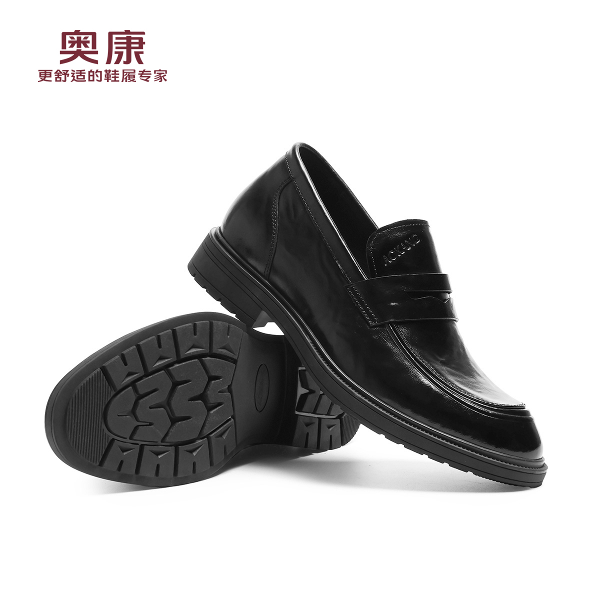 奥康 男鞋增高鞋商务休闲皮鞋真皮透气隐形增高一脚蹬驾车男鞋N