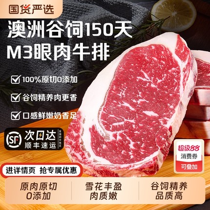澳洲M3原切眼肉牛排进口安格斯牛肉谷饲雪花厚切健身新鲜牛扒