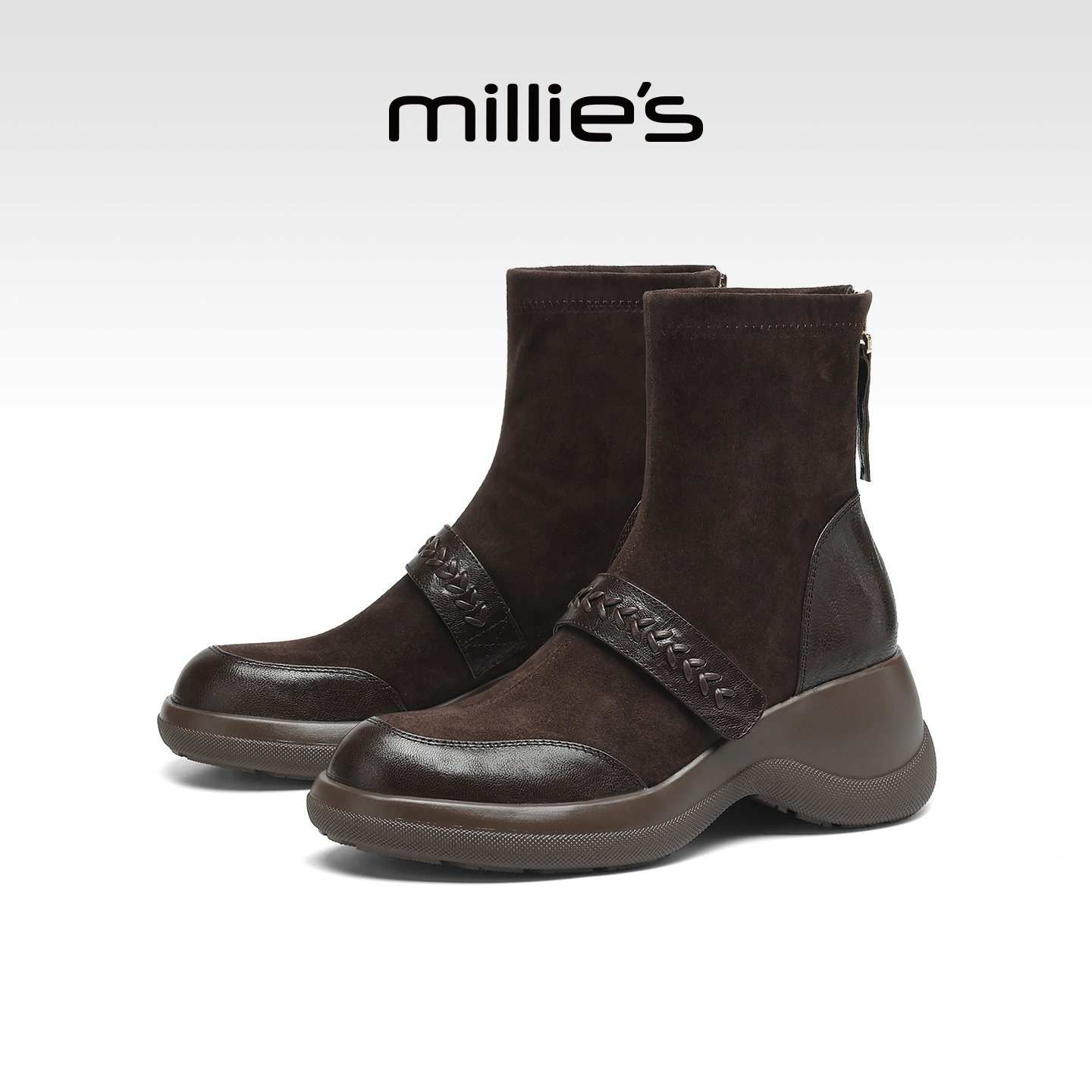 millies妙丽厚底增高马丁靴2025新款短靴加绒时装靴子女靴瘦瘦靴
