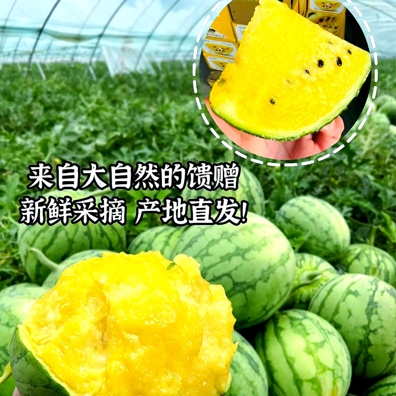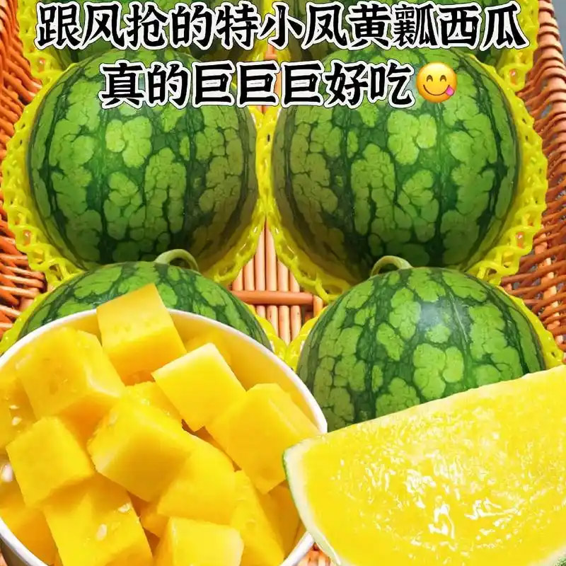 冰淇淋黄心西瓜特小凤5斤黄瓤手撕西瓜新鲜水果整箱脆甜皮薄黑籽