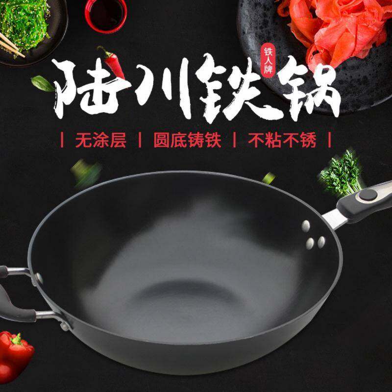 陆川铁锅铁人牌生铁锅圆底铸铁锅无涂层锅不粘锅不生锈燃气炉炒锅
