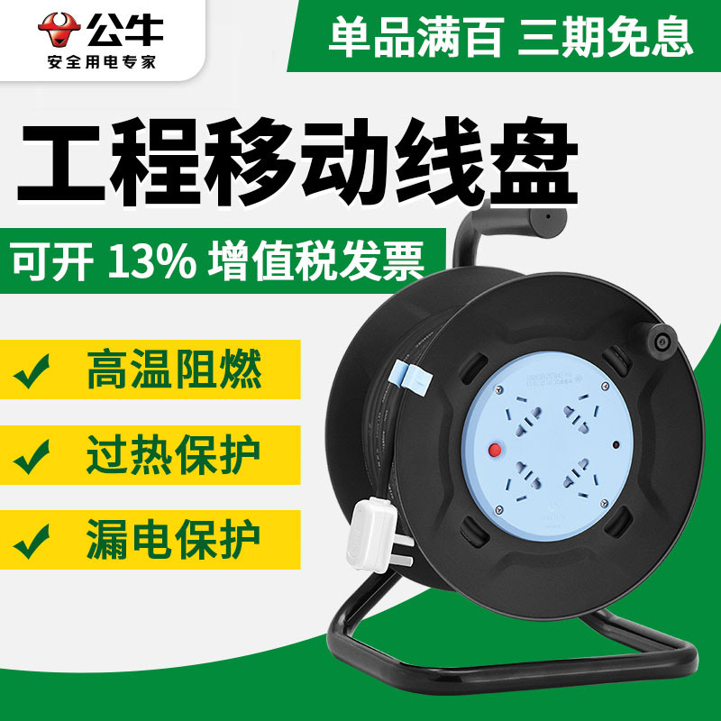 公牛线盘移动式电缆绕线盘卷线轴空盘20m30米50M带线延长线排插座