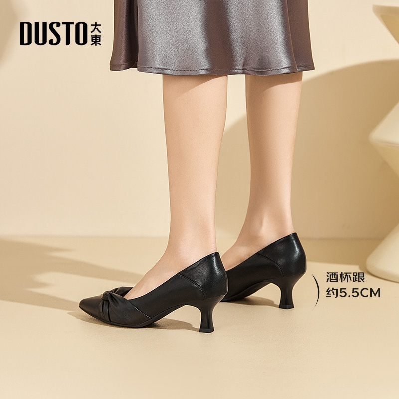大东尖头细跟高跟鞋女2025新款秋季上班通勤鞋黑色软底职业工作鞋