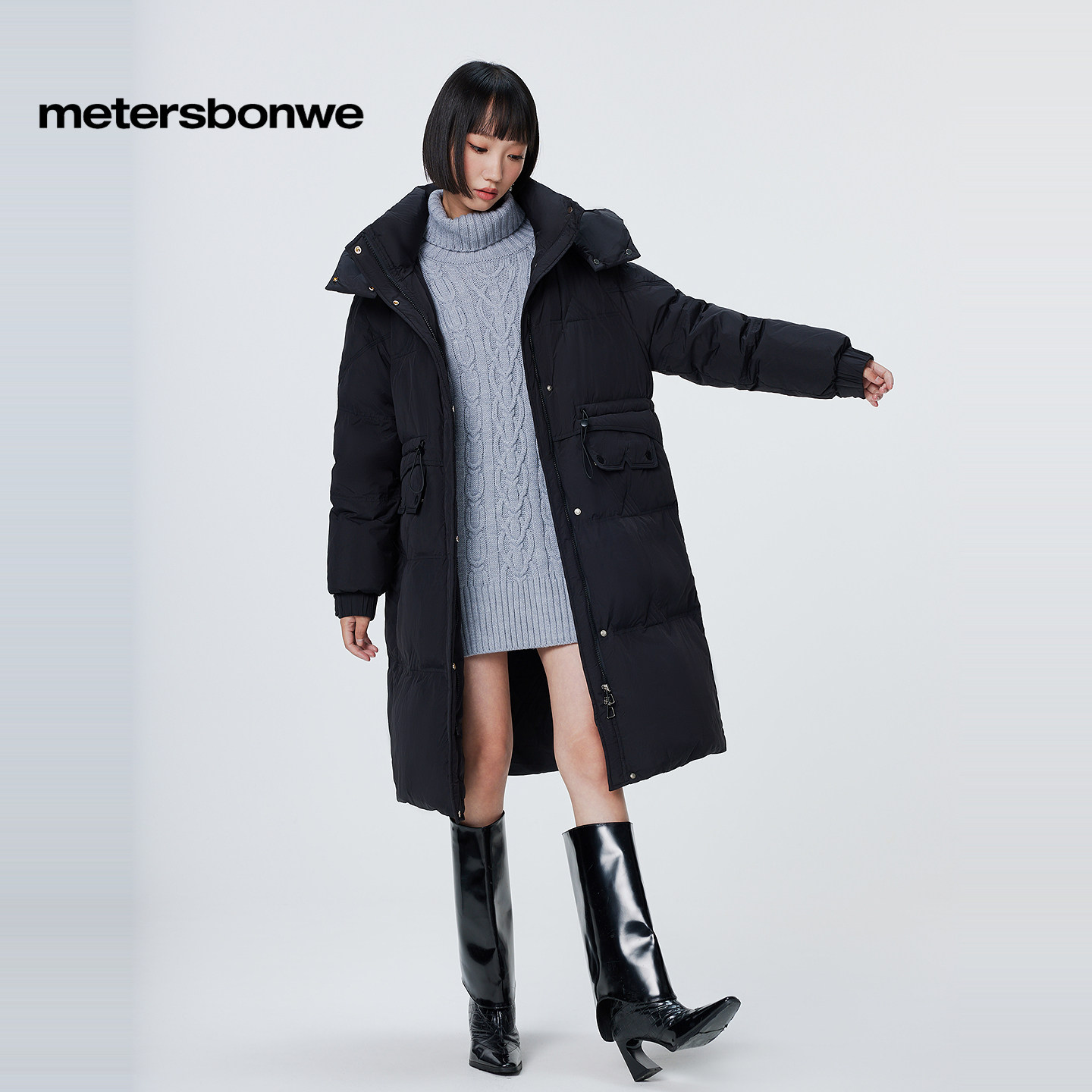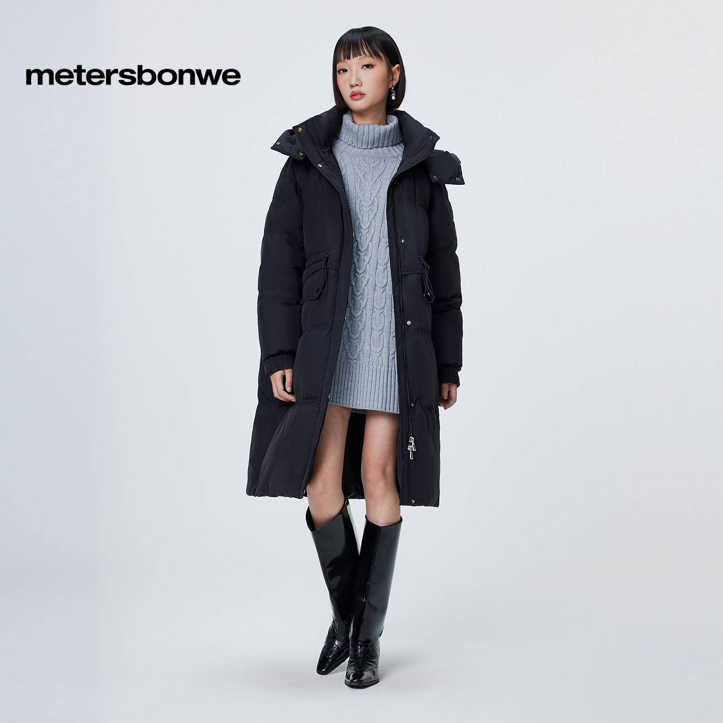 美特斯邦威羽绒服女冬季新款时尚简约舒适长款休闲保暖连帽外套