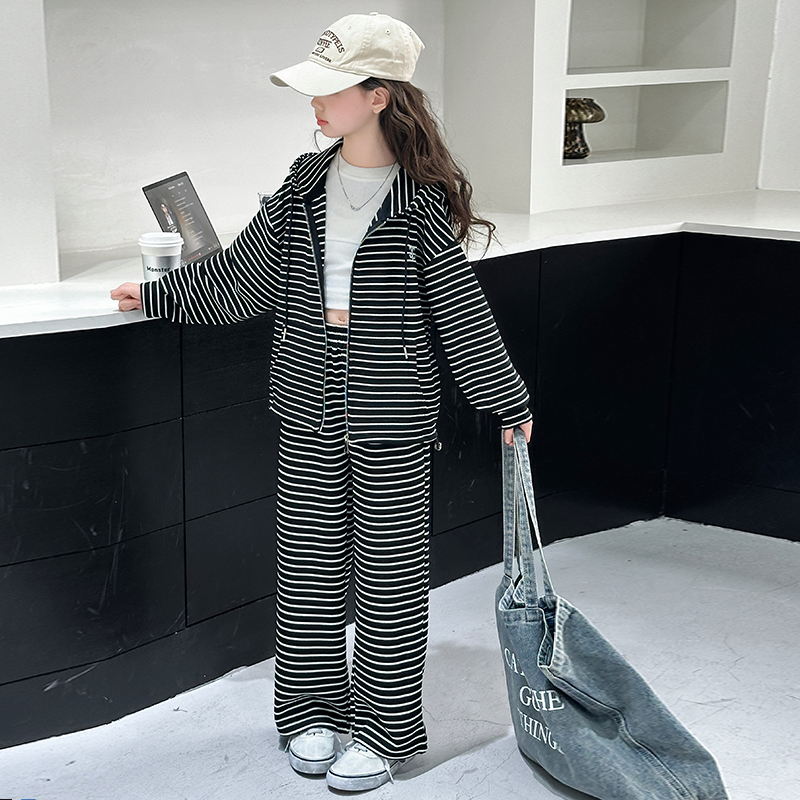 女童条纹卫衣两件套大童2025新款女宝洋气春装套装中大童时髦衣服