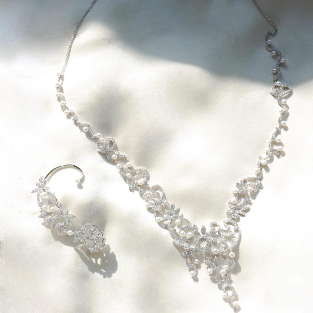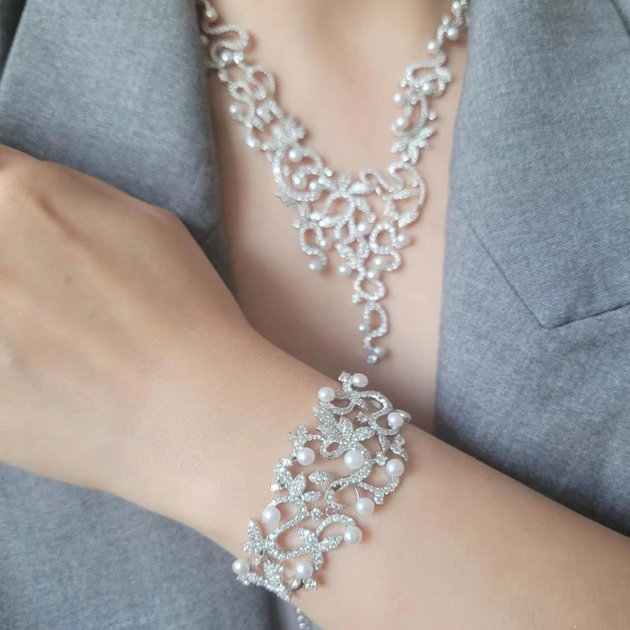 杨紫同款珍珠花朵手链垂坠耳环耳扣耳钉个性珍珠花朵项链送礼物