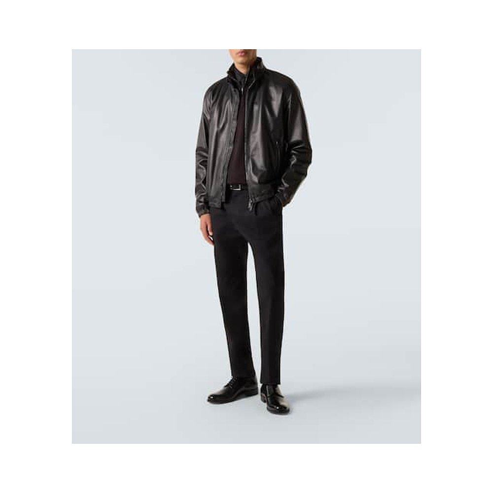 香港直邮armani 阿玛尼 男士 皮革夹克 black黑色 舒适时尚皮衣