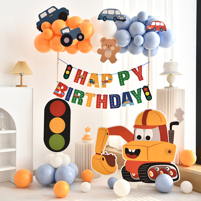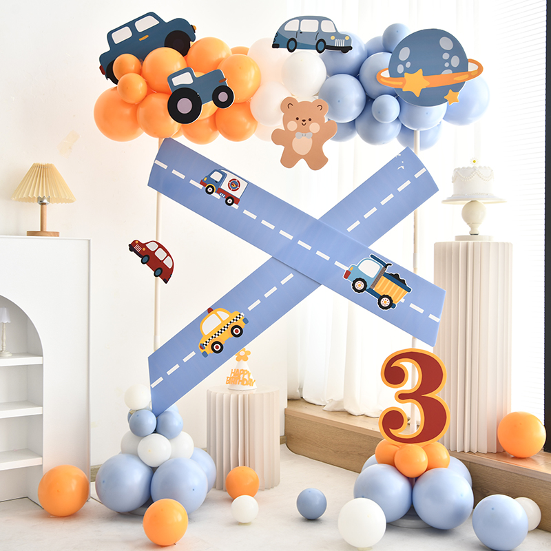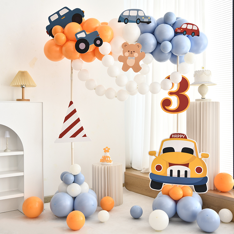 小汽车主题气球儿童宝宝男孩装饰生日场景布置立柱拍照拱门酒店