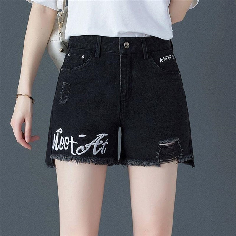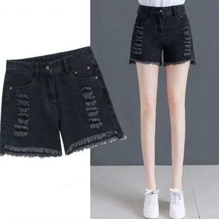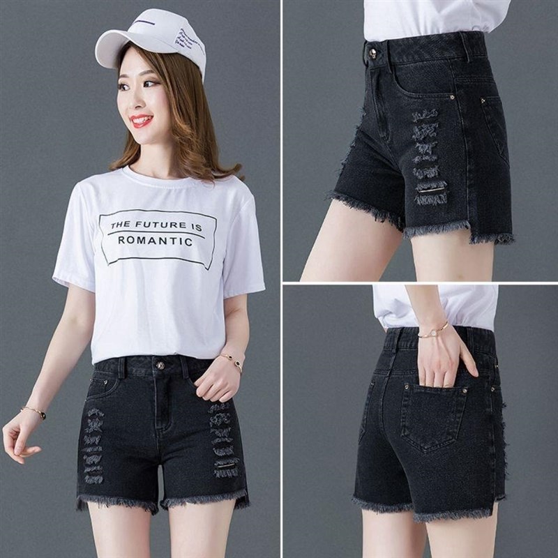 高品质黑色破洞牛仔短裤女夏新款宽松高腰显瘦百搭学生裤外穿薄款