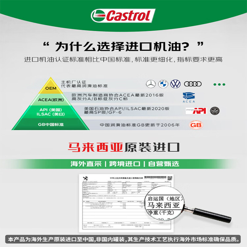 【自营】Castrol/嘉实多极护5W-40全合成机油 SP发动机润滑油 4L