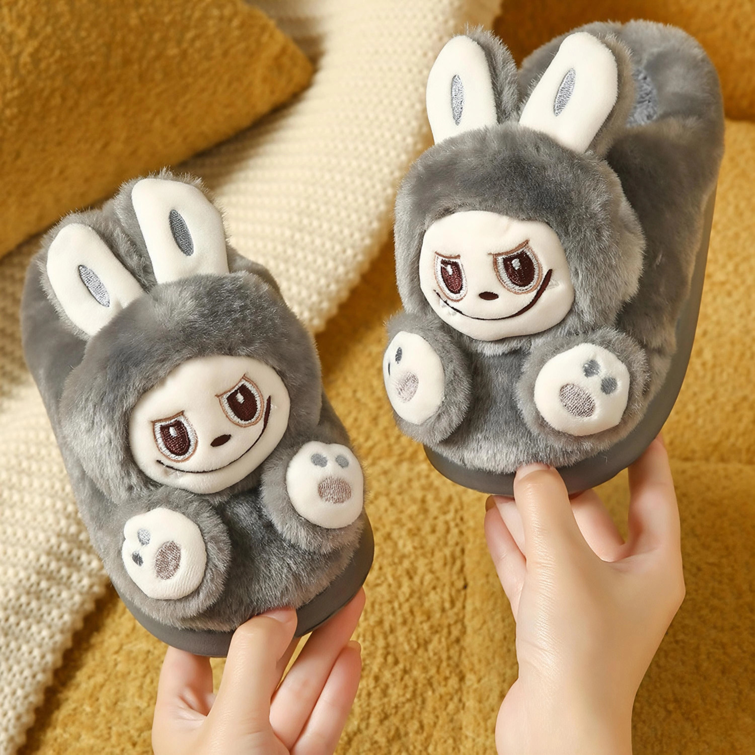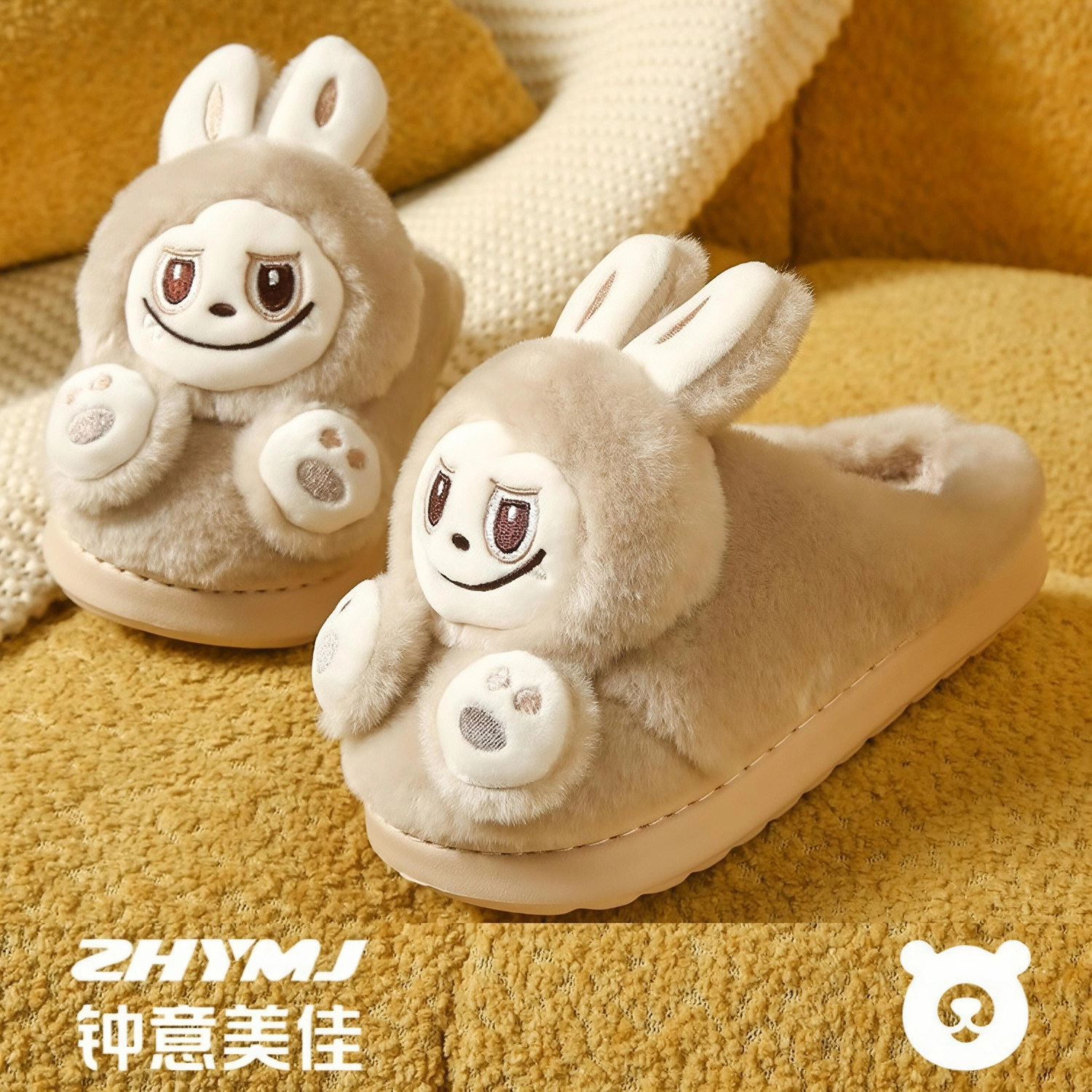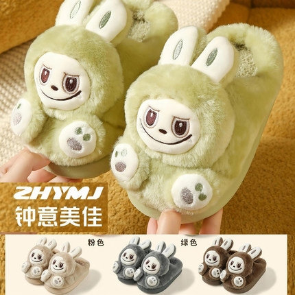2025钟意美佳卡通时尚小怪兽儿童棉拖鞋居家可爱保暖防滑软底加厚