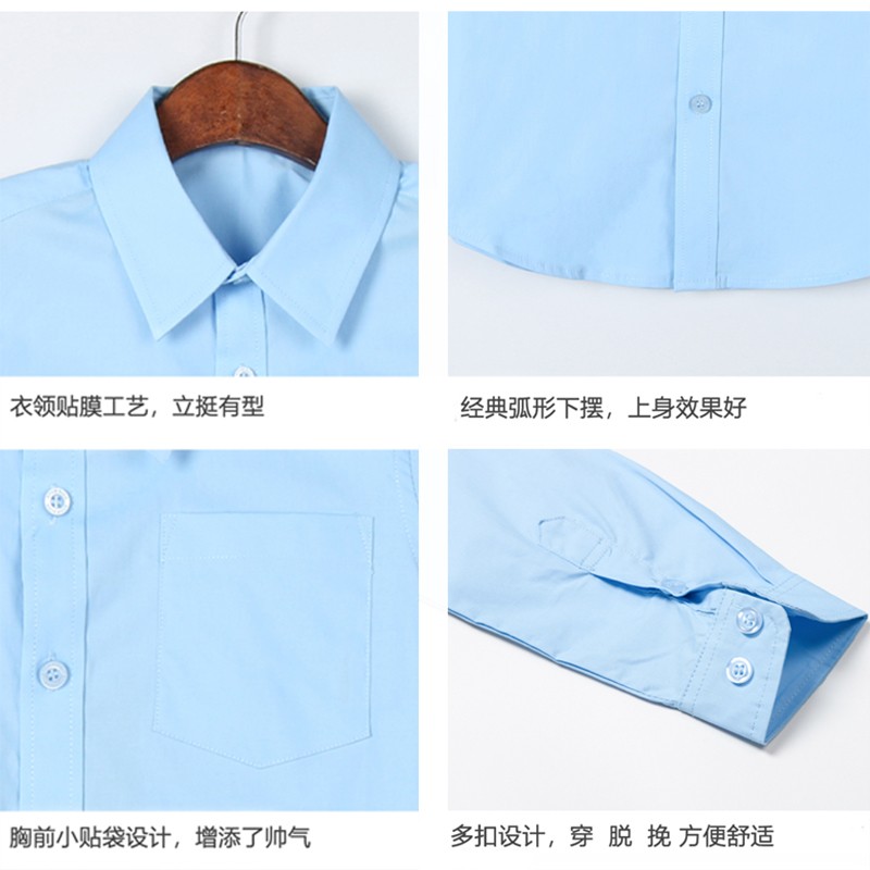 儿童蓝色衬衣长袖春秋纯棉中大童女童男童小学生校服上衣白色衬衫