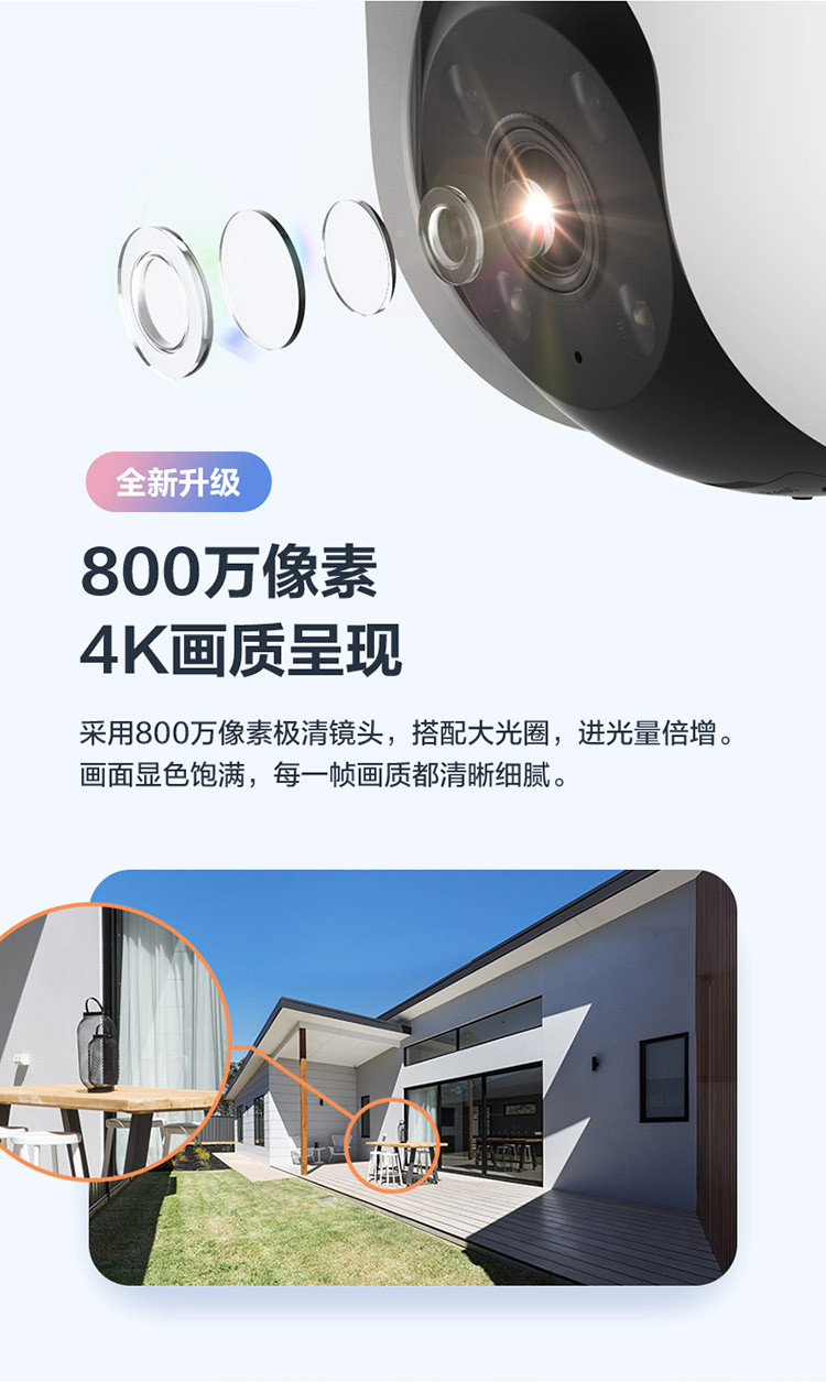 萤石摄影头C8C800万家用无线高清监控器手机远程莹石云摄像头户外