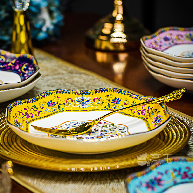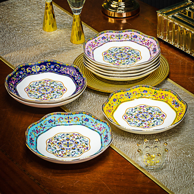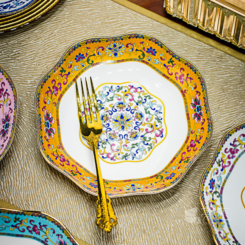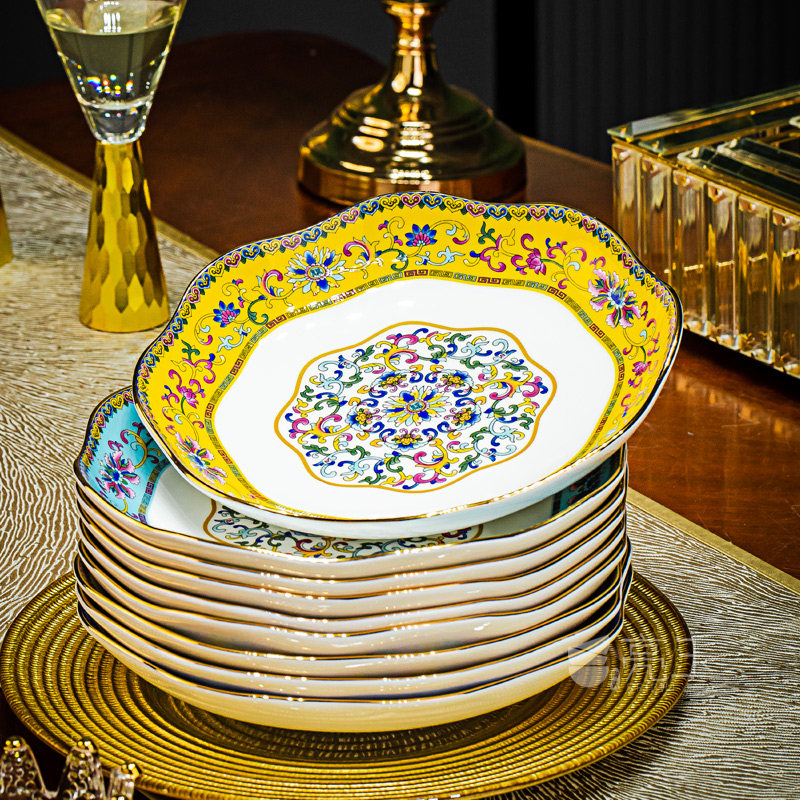 景德镇中式家用装菜盘子描金花边深盘珐琅彩骨瓷冷菜盘陶瓷水果盘