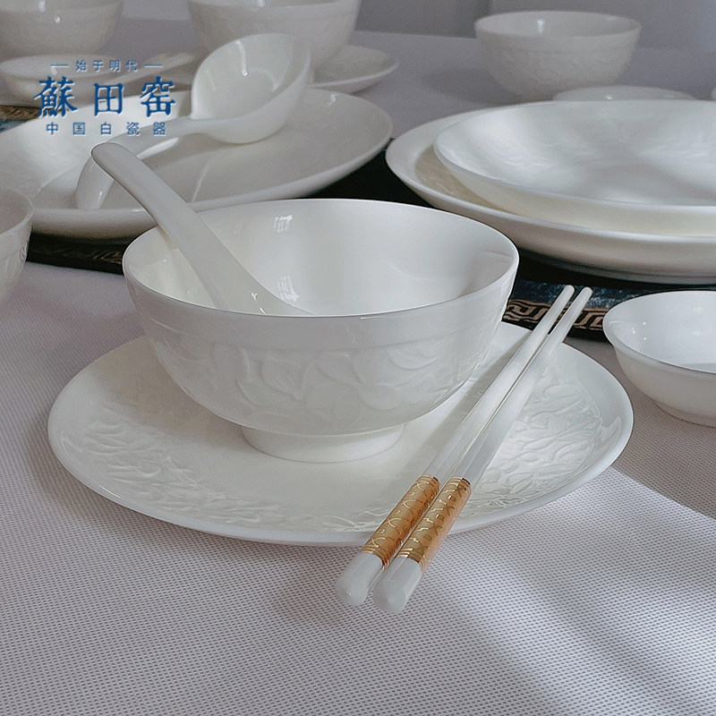 羊脂玉瓷中式餐具德化白瓷高端餐碗盘碟碗筷煲汤家用套装轻奢组合