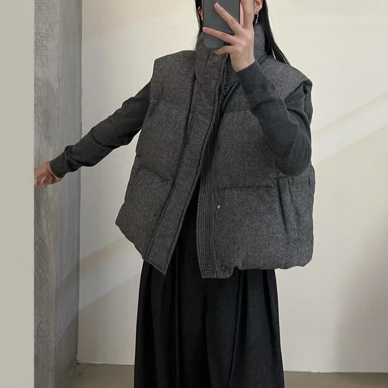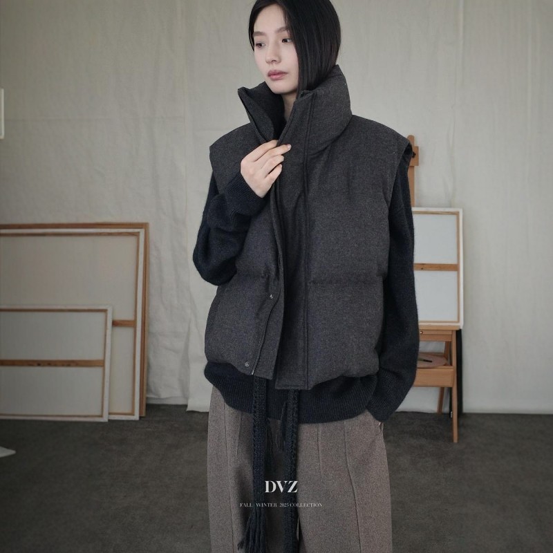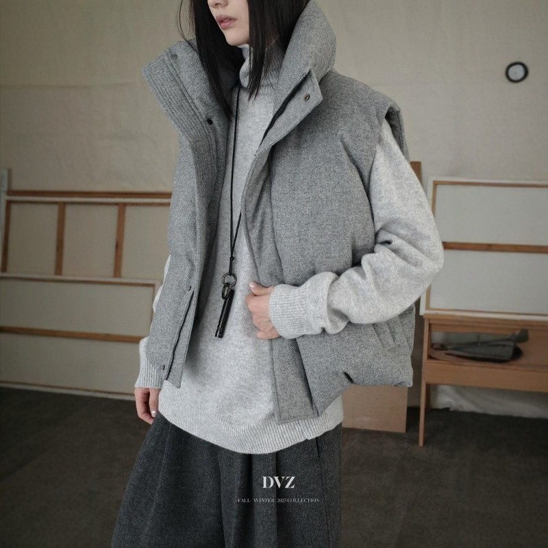DVZ欧洲站2025冬季时尚百搭宽松90白鸭绒羽绒服马甲背心羊毛外套1