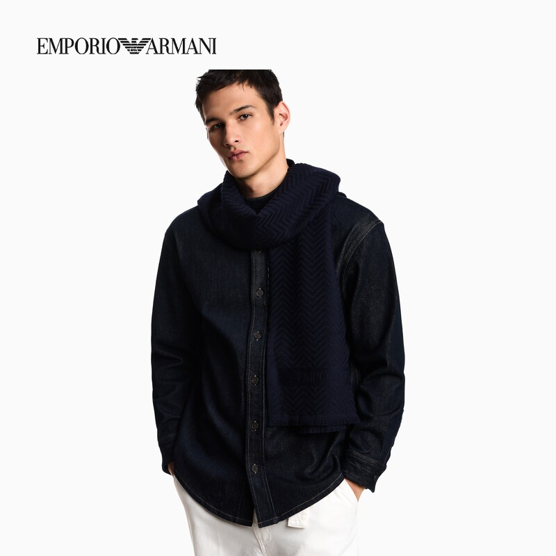 【情人节礼物】EMPORIO ARMANI/阿玛尼冬季新款男绵羊毛提花围巾