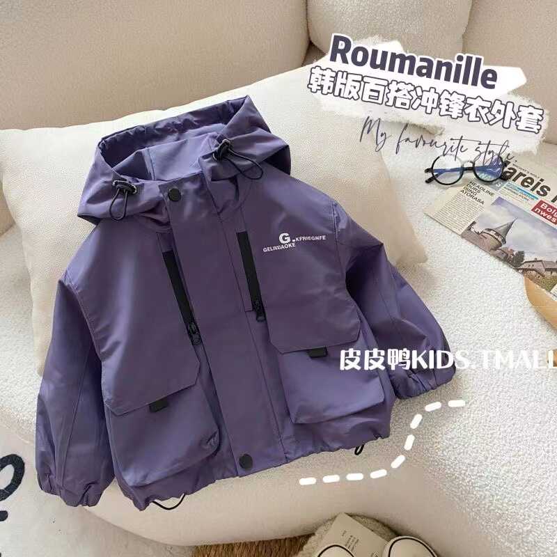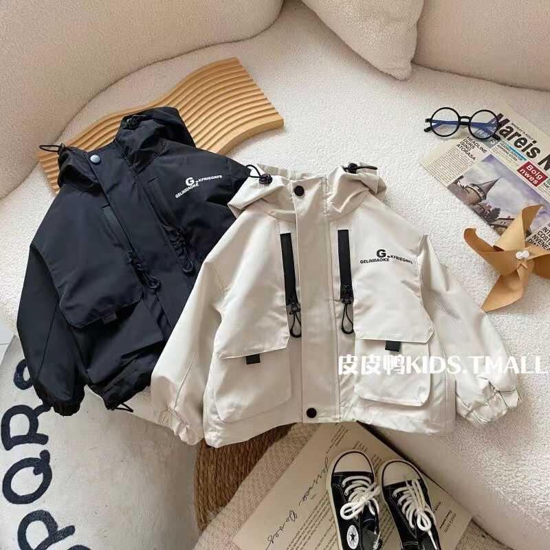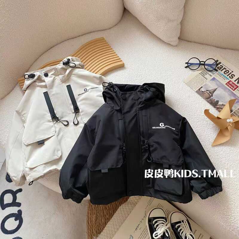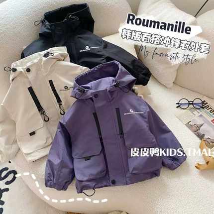 男童冲锋外套春秋宝宝冲锋衣秋装儿童秋季新款上衣小童连帽男孩