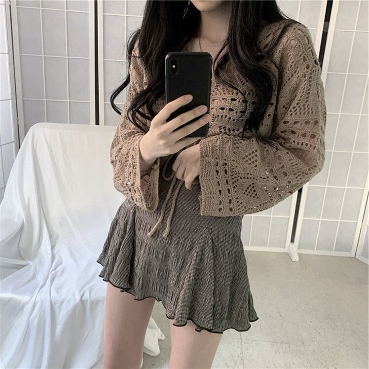 夏季长袖冰丝防晒上衣薄款港味镂空针织空调罩衫吊带裙外搭小披肩