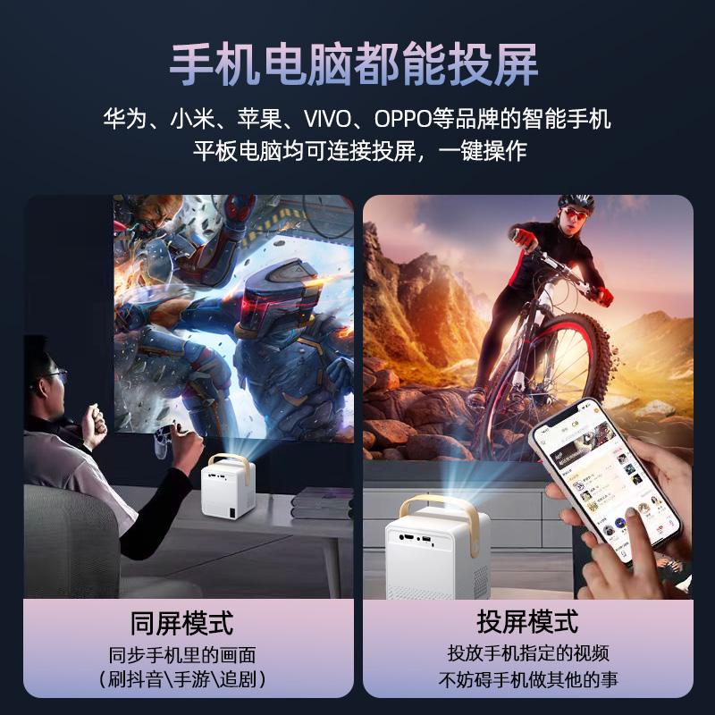 新款投影仪家用超高清卧室投墙家庭影院手机投屏小型便携护眼免费看电视自动对焦投影机