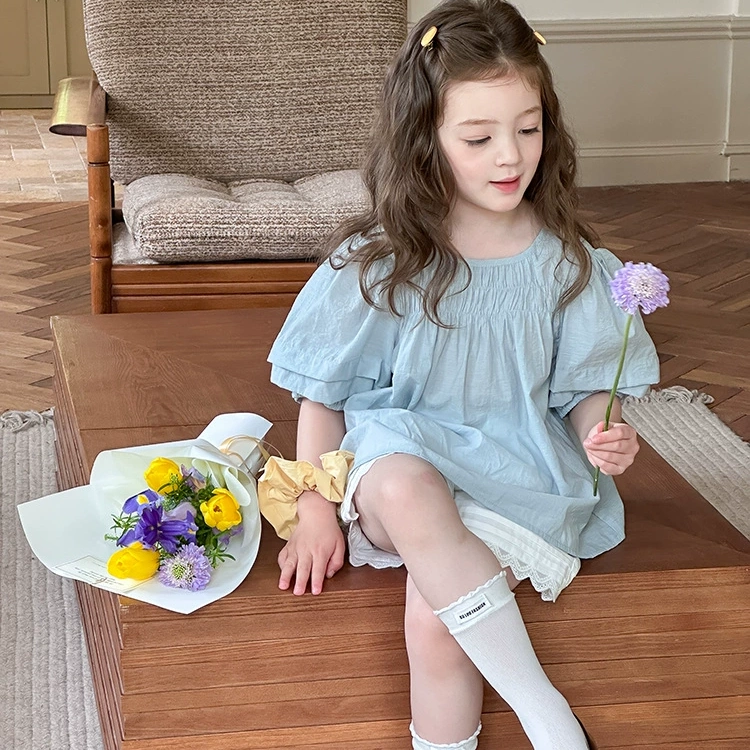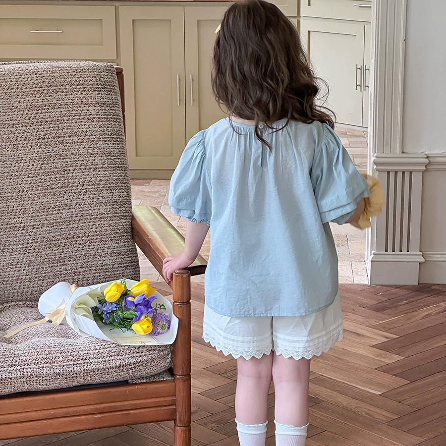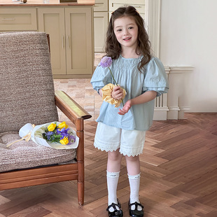 Yumi妈女童纯色儿童气质温柔风打揽甜美泡泡袖娃娃衬衫 25C179