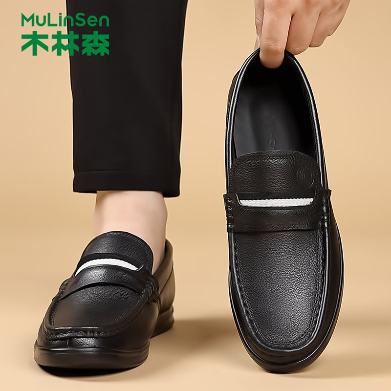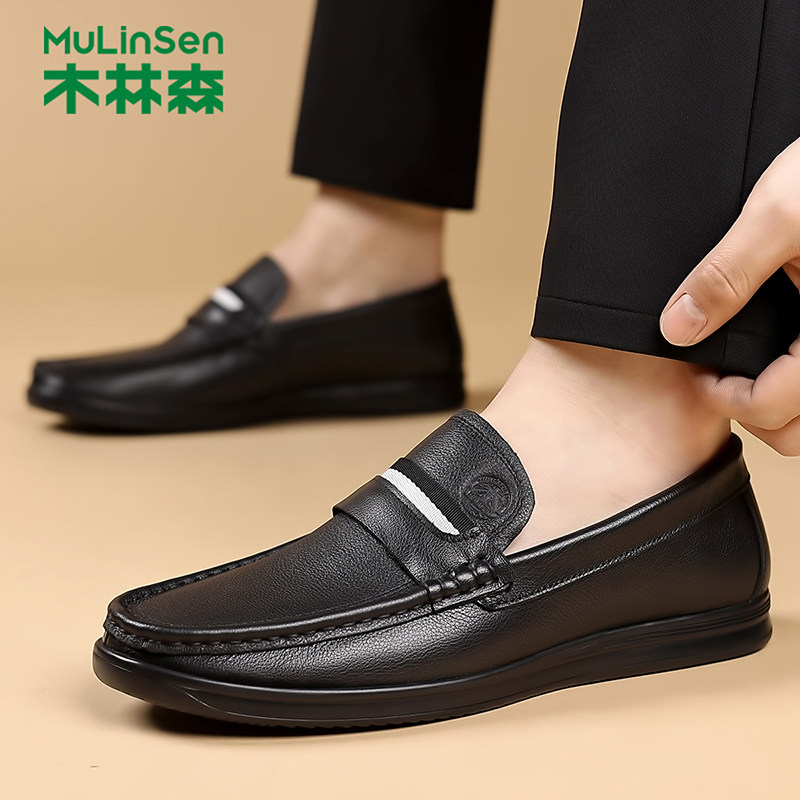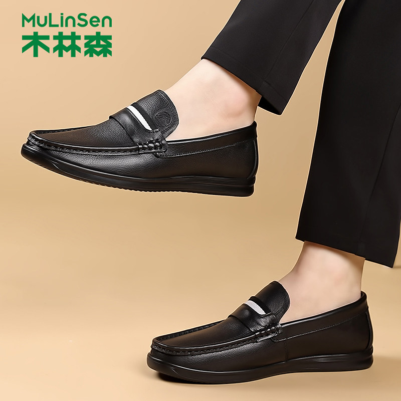 木林森皮鞋男真皮新款正装夏季商务休闲防男士中老年豆豆乐福鞋子