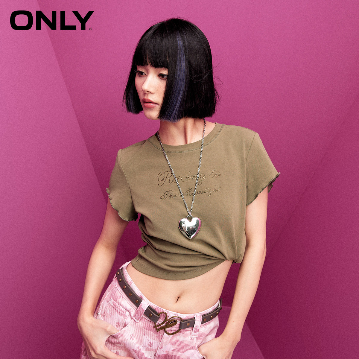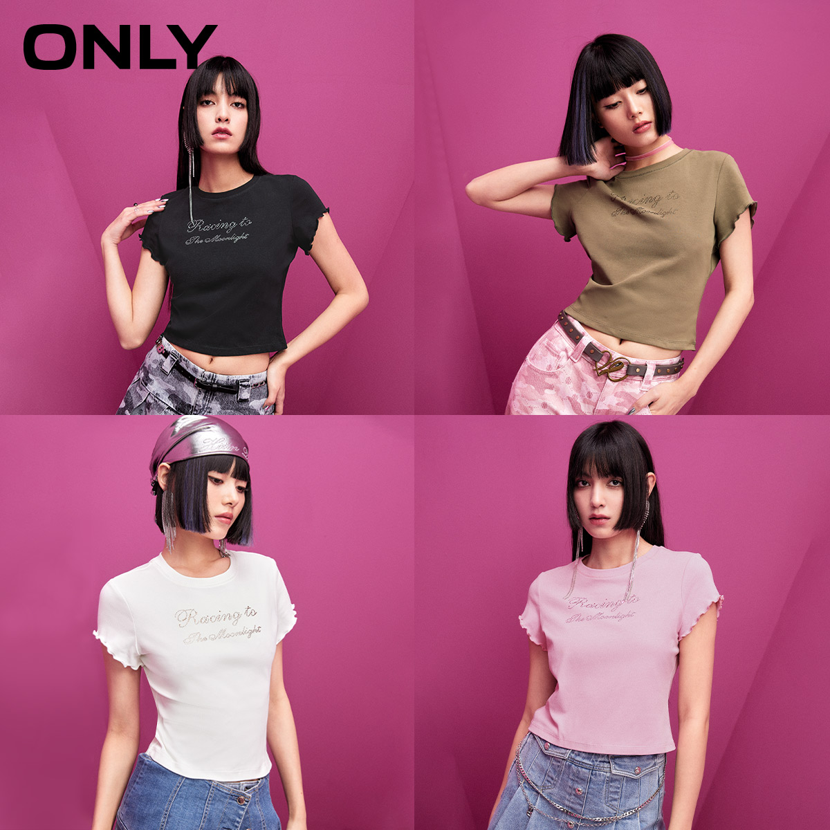 【ONLY奥莱】夏季时尚百搭修身圆领花边袖口短款T恤女