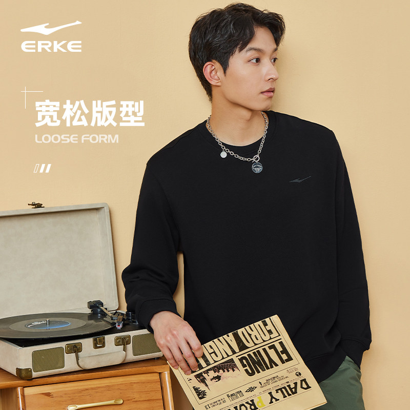 鸿星尔克卫衣男2026夏季男士圆领套头衫打底卫衣男款运动上衣男装