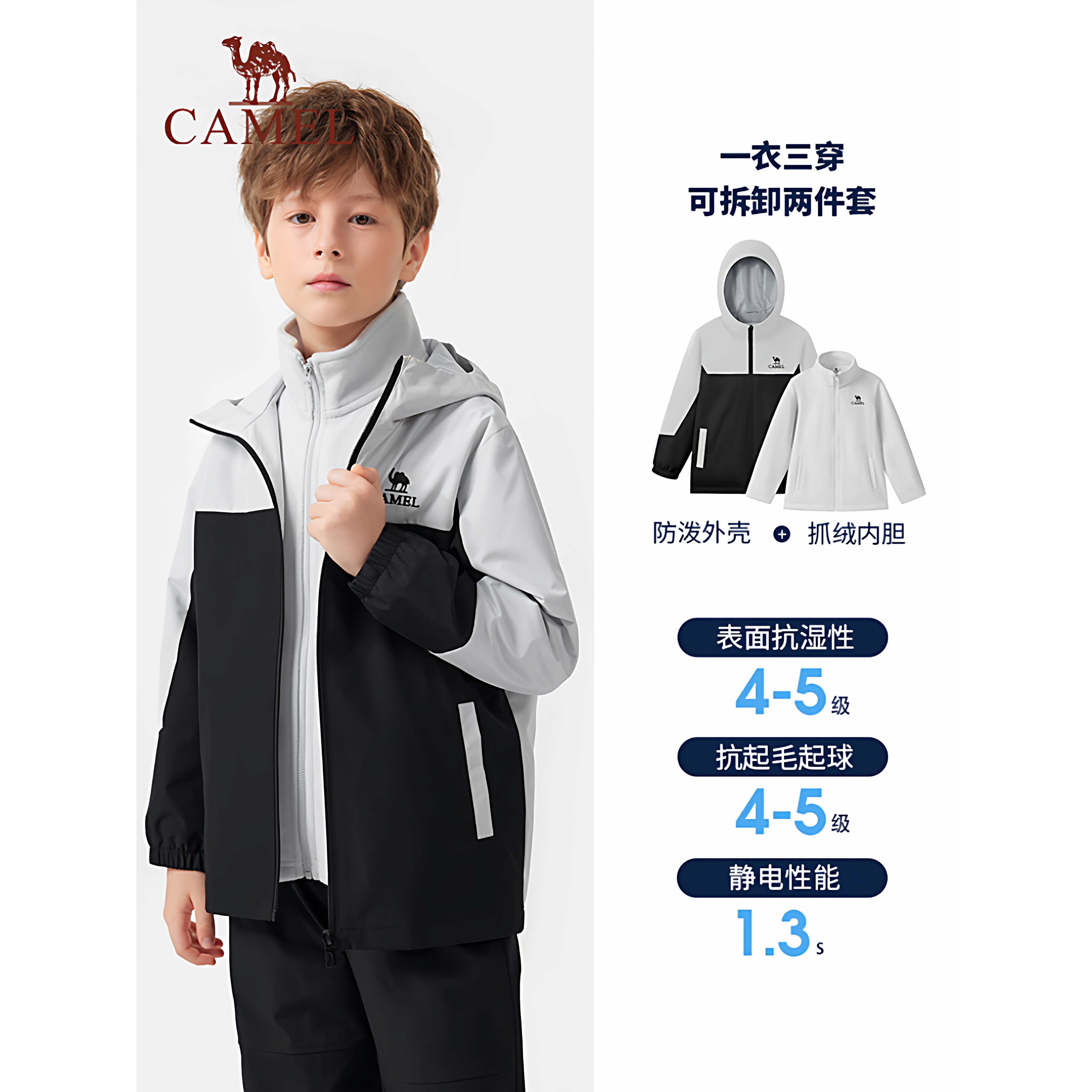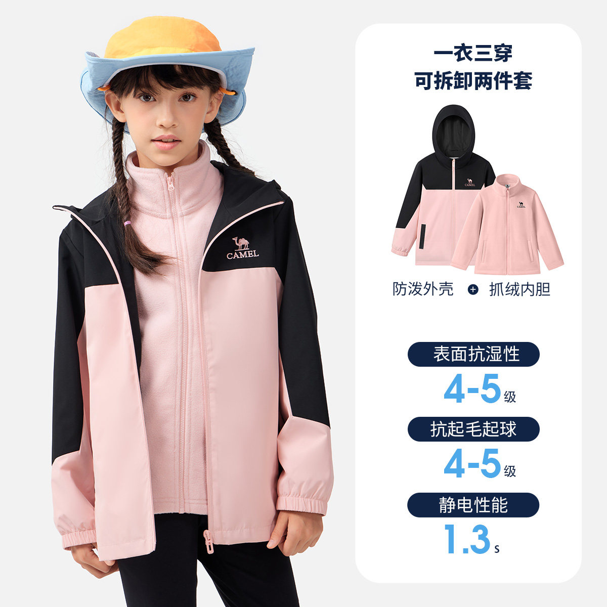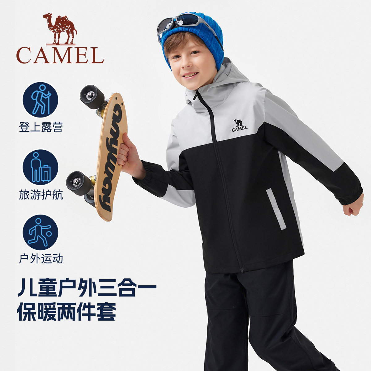 小骆驼儿童外套三合一防风户外夹克滑雪服软壳中大童保暖男童外套