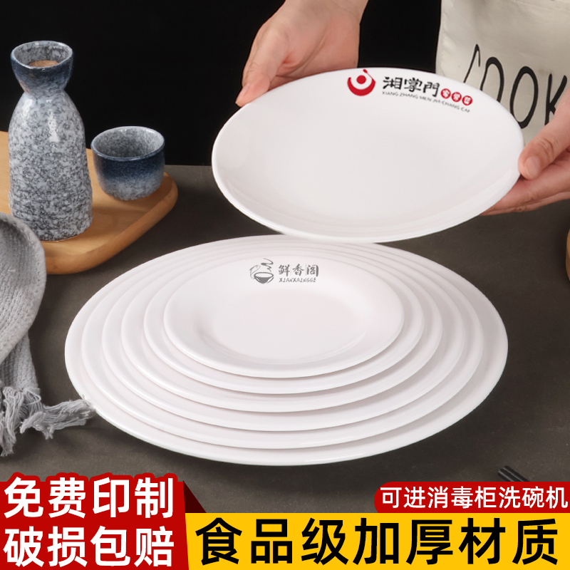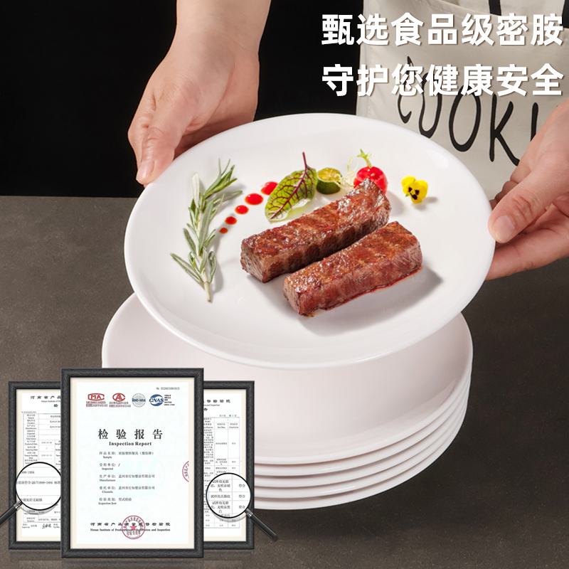 白色圆盘酒店自助餐盘密胺盘子仿瓷餐具商用塑料菜碟平盘饭店专用