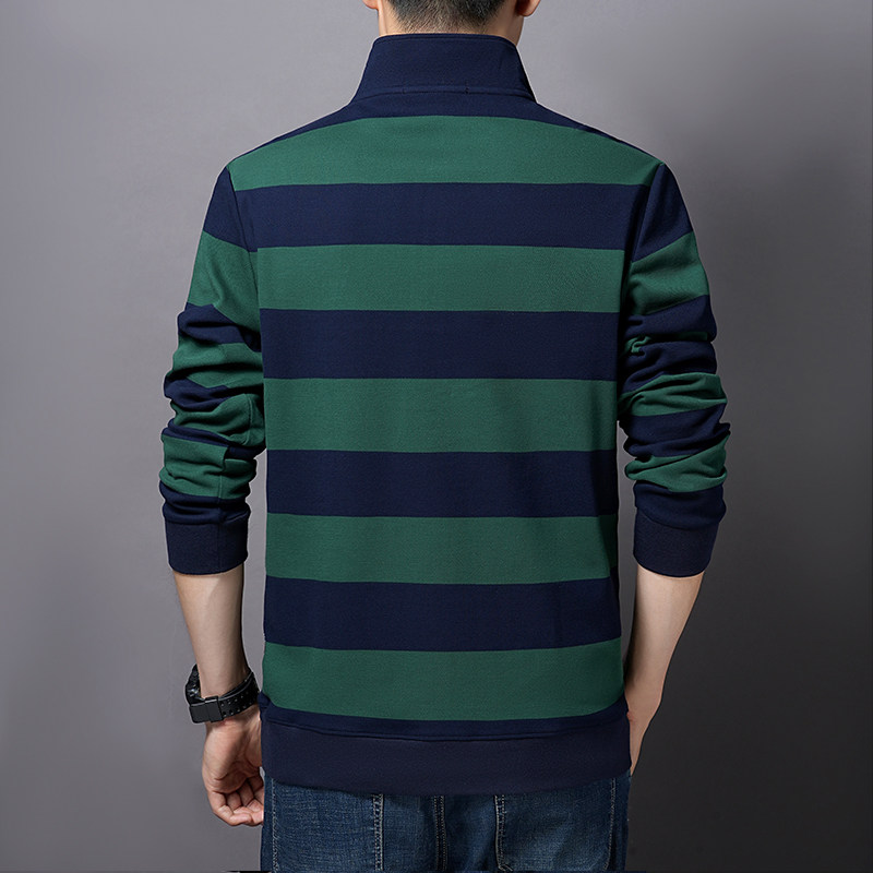 吉普半高领卫衣男士2025春秋季新款条纹纯棉长袖t恤宽松休闲上衣